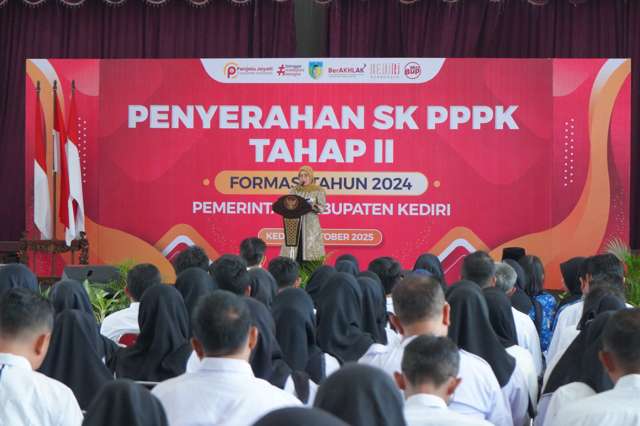 Mbak Dewi menekankan, status baru sebagai ASN dengan skema PPPK menuntut keseriusan dan komitmen bersama untuk memberikan pelayanan terbaik bagi masyarakat Kabupaten Kediri. Dalam sambutannya, Mbak Dewi juga menyampaikan tiga pesan penting. Pertama, perubahan status dari tenaga kontrak menjadi ASN/PPPK harus diiringi dengan perubahan pola pikir serta kesadaran akan hak, kewajiban, dan tanggung jawab yang lebih besar.