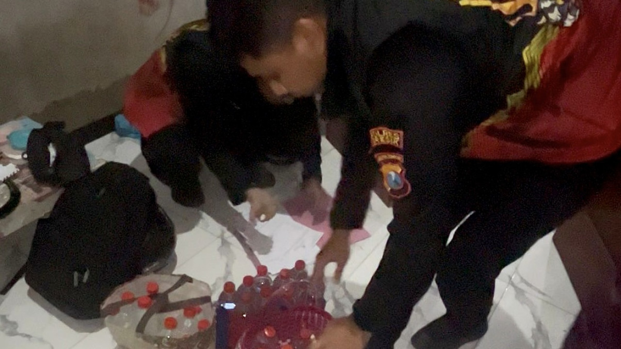 Tim kemudian bergerak ke lokasi dimaksud dan berhasil mengamankan seorang pria lain berinisial AW beserta barang bukti miras yang disembunyikan di dalam tas dan kamar.
