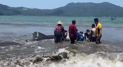 “Saat ditemukan hiu paus masih dalam kondisi hidup. Kami bersama warga dan nelayan berusaha mendorongnya kembali ke laut,” kata Aipda Setyono, Bhabinkamtibmas Polsek Watulimo, Jumat (3/10/2025).