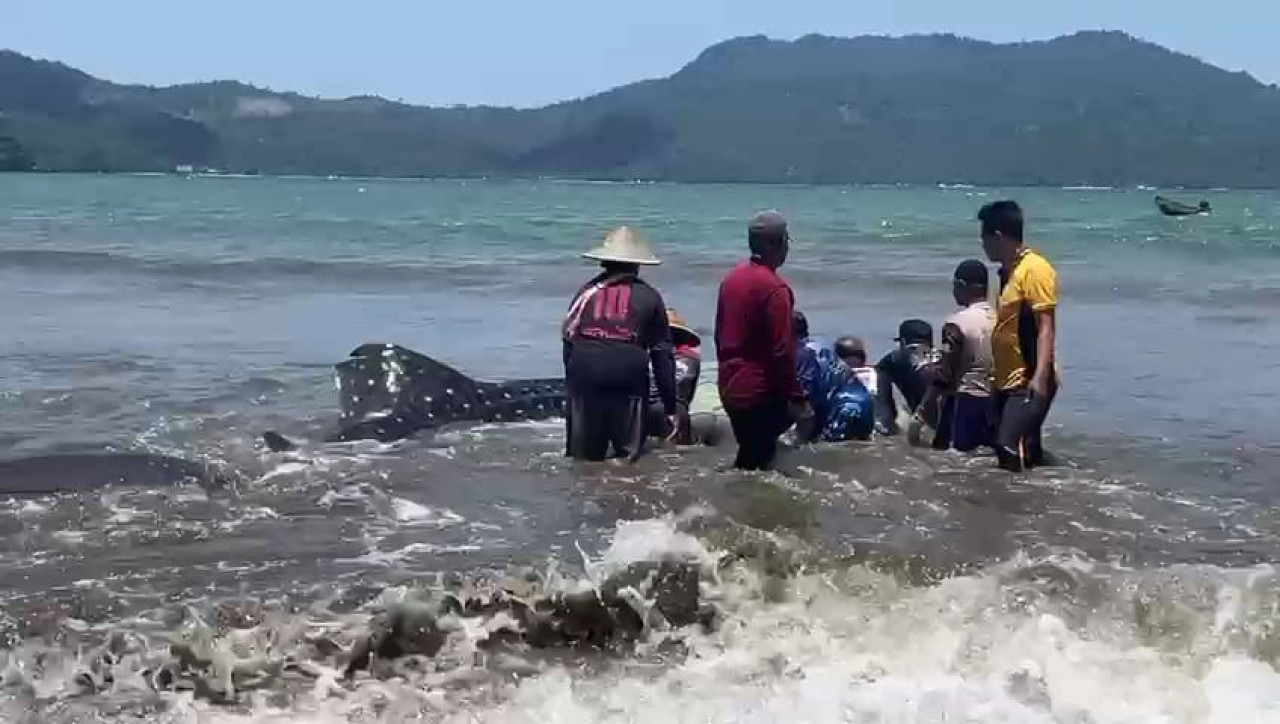 Setyono menjelaskan, proses penyelamatan tidak mudah karena ukuran hiu paus yang mencapai lebar 1,5 meter. Dengan tenaga bersama masyarakat, nelayan, dan aparat kepolisian, hiu tersebut perlahan berhasil diarahkan kembali ke perairan yang lebih dalam.