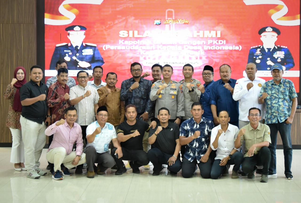 jatimnow.com - Sebagai upaya memperkuat kerja sama antara kepolisian dan pemerintah desa, Kapolres Gresik AKBP Rovan Richard Mahenu, menggelar silaturahmi akbar bersama Ketua Persatuan Kepala Desa Indonesia (PKDI) se-Kabupaten Gresik, Jumat (10/10/2025). Kegiatan yang berlangsung di Aula SAR Polres Gresik ini menjadi momentum penting dalam membangun sinergi menjaga Situasi Keamanan dan Ketertiban Masyarakat (Sitkamtibmas) di Kota Pudak.