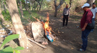 Meski tak ada pelaku yang diamankan, petugas tetap mengambil tindakan tegas. Sejumlah barang bukti berupa terpal dan kurungan ayam yang digunakan dalam kegiatan sabung ayam dimusnahkan dengan cara dibakar di tempat untuk mencegah kegiatan serupa terulang.