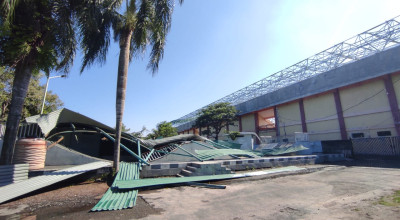 jatimnow.com-Peristiwa angin kencang yang merusak atap Stadion Gelora Penataran Nglegok, Kabupaten Blitar menyebabkan kerugian hingga Rp2 Miliar.