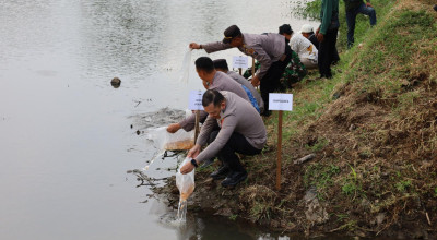 Jaga Ekosistem Sungai, Polres Tulungagung Tebar 5.000 Benih Ikan Tombro