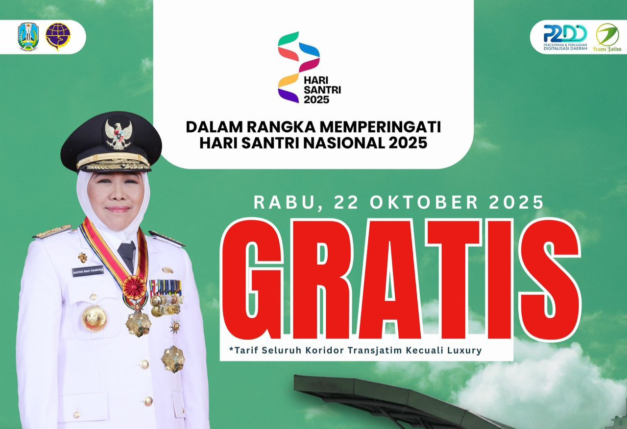 “Momentum Hari Santri kami maknai sebagai refleksi nilai pengabdian, keikhlasan, dan gotong royong. Semangat itu pula yang kami bawa dalam setiap kebijakan pembangunan, termasuk di sektor transportasi. Dengan tarif gratis Trans Jatim di Hari Santri ini, kami ingin memberikan apresiasi kepada seluruh masyarakat Jawa Timur sekaligus mengajak mereka untuk mulai beralih pada moda transportasi publik yang lebih ramah lingkungan,” ujar Gubernur Khofifah di Surabaya, Selasa (21/10/2025).
