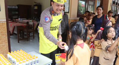 "Anak-anak adalah masa depan bangsa. Kesehatan mereka hari ini akan menentukan kualitas Indonesia di masa depan," tegasnya.Foto: Petugas membagikan paket makanan dari progam mobil senyum si kuning. (Polres Tulungagung/jatimnow.com)