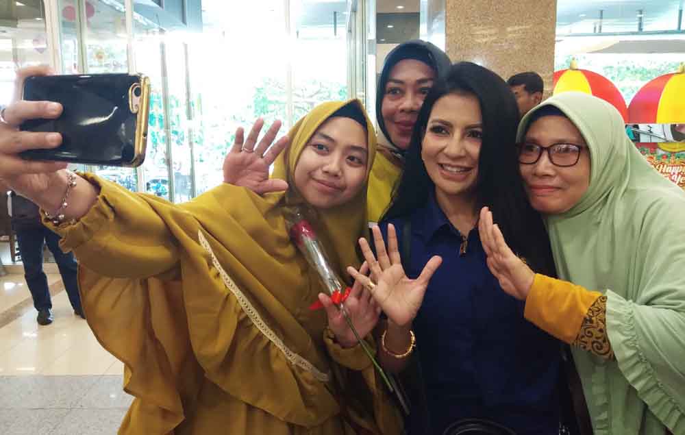 "Ya Allah...senang saya," ujar seorang ibu yang nampak berkaca-kaca matanya karena senang bertemu dengan artis idolanya Hans Hosman.