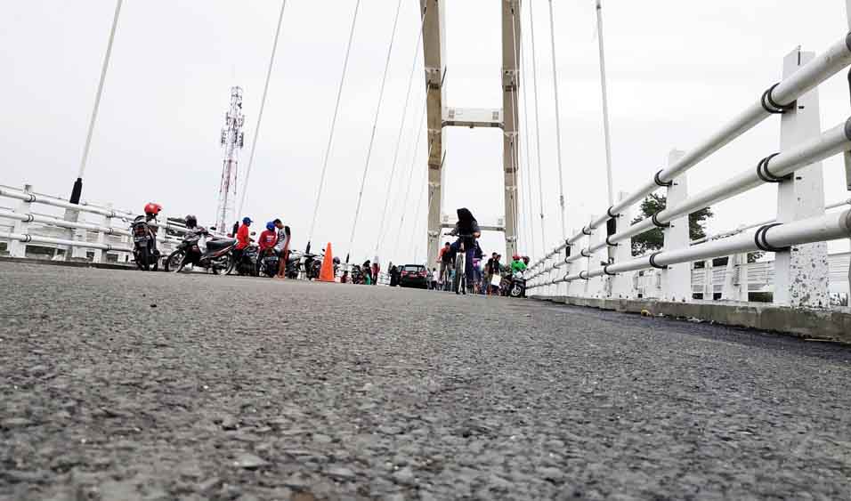 Tak cukup di situ saja, jembatan yang dibangun dengan dana hampir Rp 100 miliar ini, tak luput dari objek foto para warga yang melintasinya.