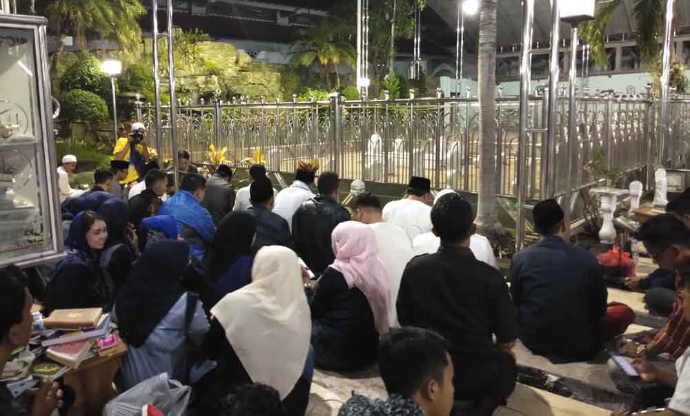 Ketua Badan Pemenangan Pemilu (Bappilu) Partai NasDem Effendy Choirie (Gus Choi) yang memimpin doa bersama di depan pusara Makam Sunan Ampel, Minggu (23/12/2018) malam. Sebelum memimpin doa, Gus Choi menerangkan tentang sejarah masuknya Islam di negeri nusantara oleh Sunan Ampel, serta para mubalighnya.