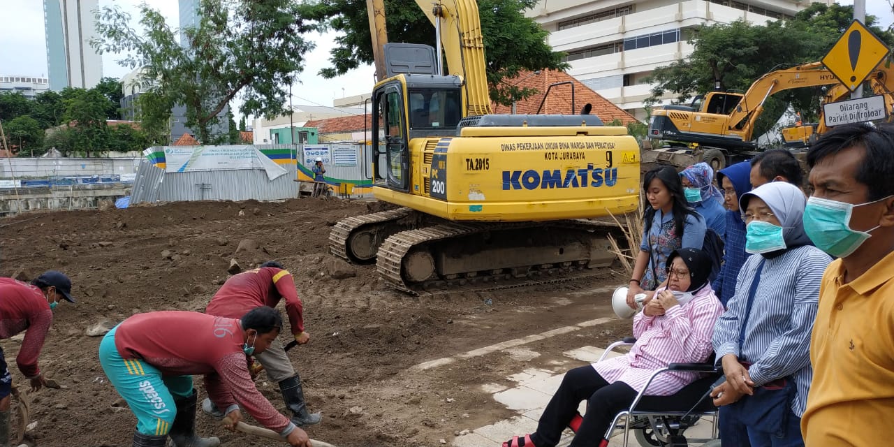Wali Kota Tri Rismaharini meski berkursi roda karena sakit, namun setiap hari memantau di lokasi untuk memastikan proses recovery berjalan lancar.