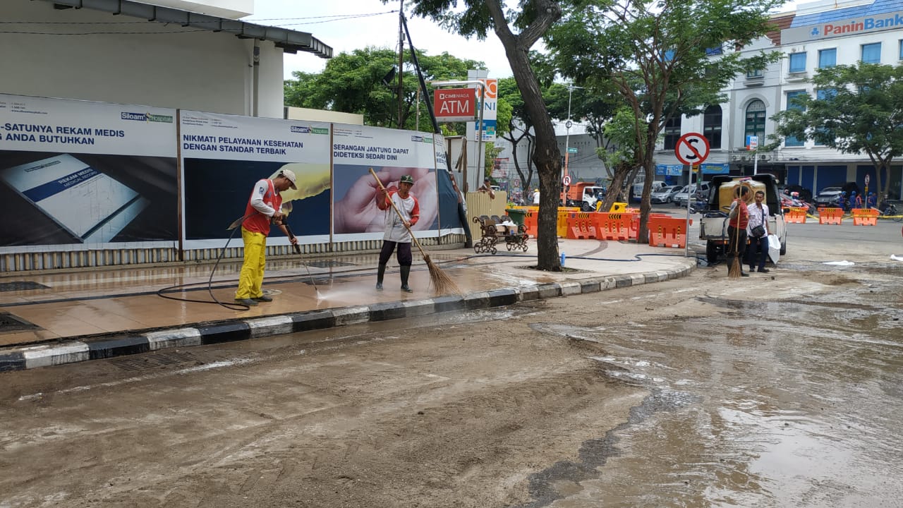 jatimnow.com - Tim Pemkot Surabaya bekerja 24 jam untuk menormalisasi Jalan Raya Gubeng yang ambles pada Selasa (18/12) malam.