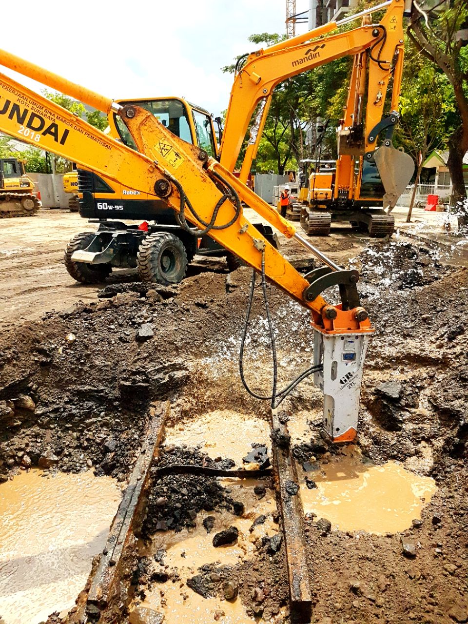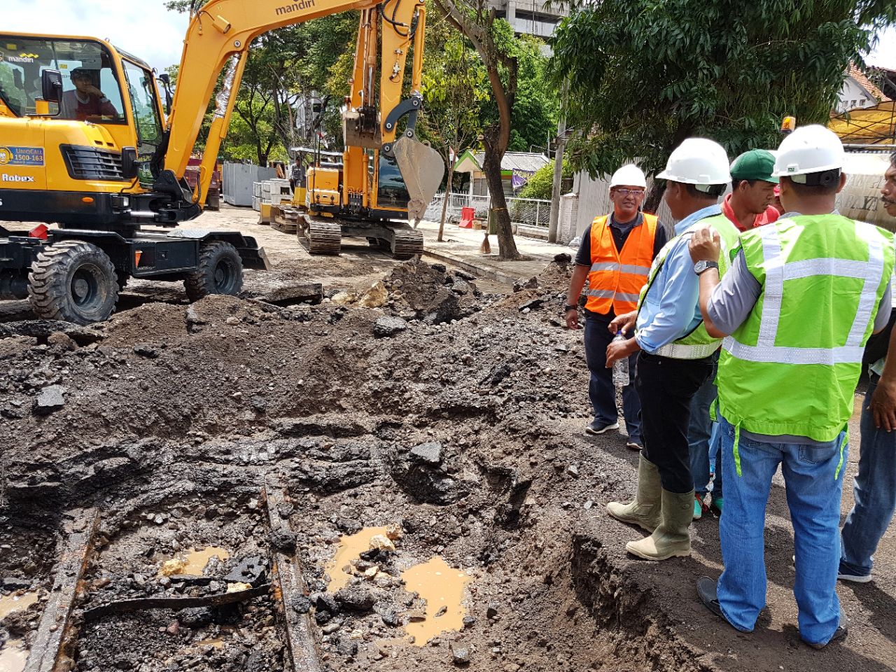 Proses recovery amblesnya tanah yang diduga imbas proyek gedung PT Saputra Karya ini memakan waktu tujuh hari. Selama proses itu lah, rel trem peninggalan jaman Belanda diketahui. Rel itu menyeruak di balik aspal yang hancur karena ambles.
