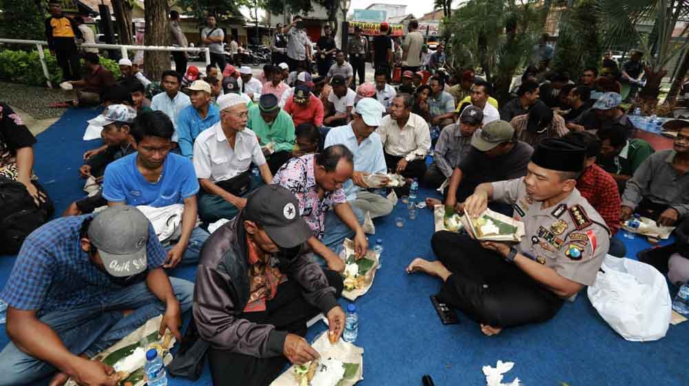 Acara Ngobrol Kamtibmas juga diisi dengan makan bersama para sopir angkot dan becak di terminal Joyo Boyo