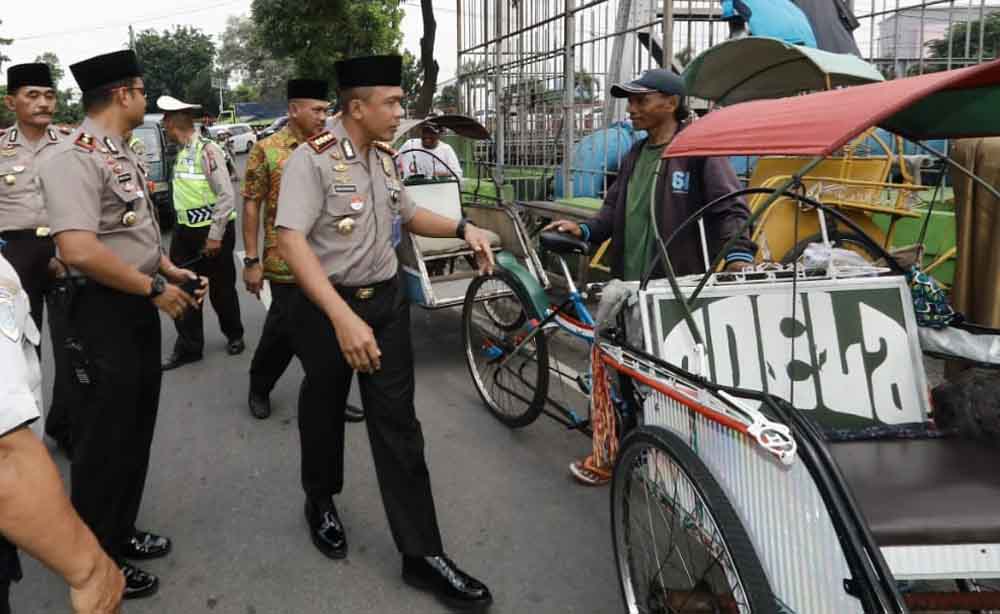 Kapolrestabes berkeliling di sekitar Terminal Joyo Boyo dan menemui para sopir angkot dan tukang becak.