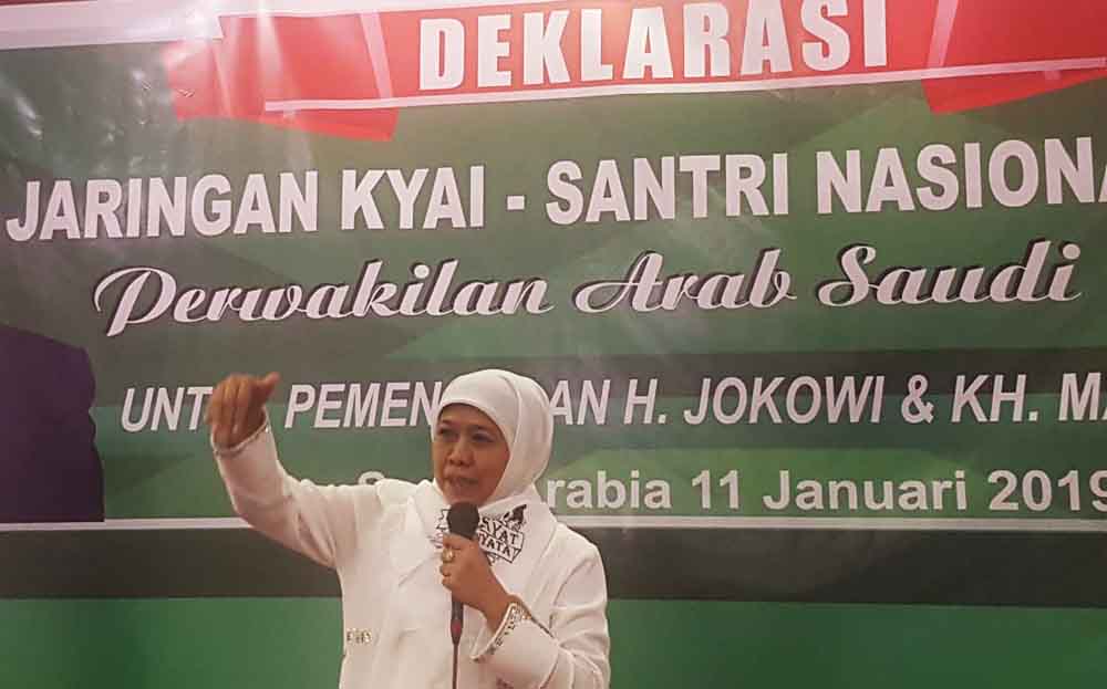 Sedangkan Khofifah meminta keikhlasan WNI di Arab Saudi untuk bersama-sama berjuang, berikhtiar bersama memenangkan Jokowi-Ma’ruf. Menurutnya, berbagai ikhtiar telah dilakukan, termasuk rombongan JKSN Pusat yang dipimpin KH Asep Saifuddin Chalim (Ketua Dewan Penasihat) tak henti mendoakan petahana di tempat-tempat mustajab selama ibadah di Makkah.