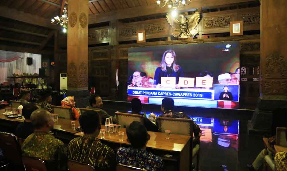 Bertempat di Pendopo Kabupaten Ponorogo, Kamis (17/1/2019), nampak Bupati Ipong berserta istri, Forkopimda serta masyarakat antusias menyaksikan jalanya siaran debat capres dan cawapres.