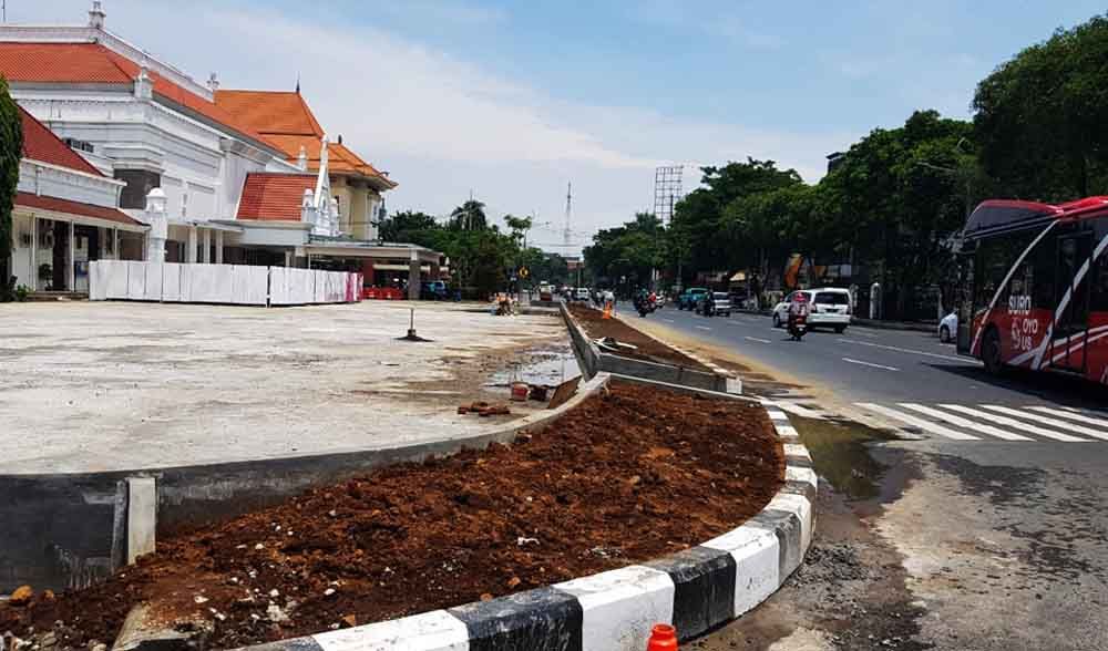 jatimnow.com - Setelah beberapa bulan ditutup karena proyek pembangunan basement untuk plasa UKM dan parkir, kini Balai Pemuda Surabaya sudah bisa dilihat kembali tanpa ada pagar penghalang.