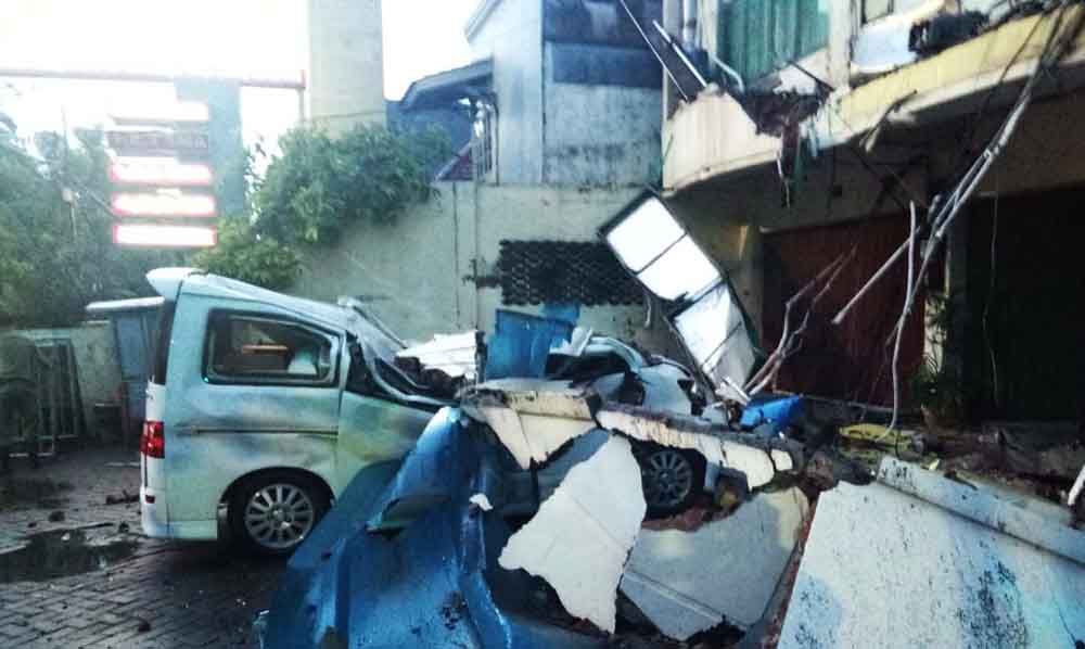 jatimnow.com - Cuaca ekstrim yang terjadi di Kota Surabaya hari ini, Sabtu (2/2/2019) mengakibatkan beberapa peristiwa, diantaranya atap bangunan ambrol, pohon tumbang, serta plengsengan jalur kereta api ambrol. Hal ini disebabkan hujan deras yang disertai angin kencang selama beberapa jam.