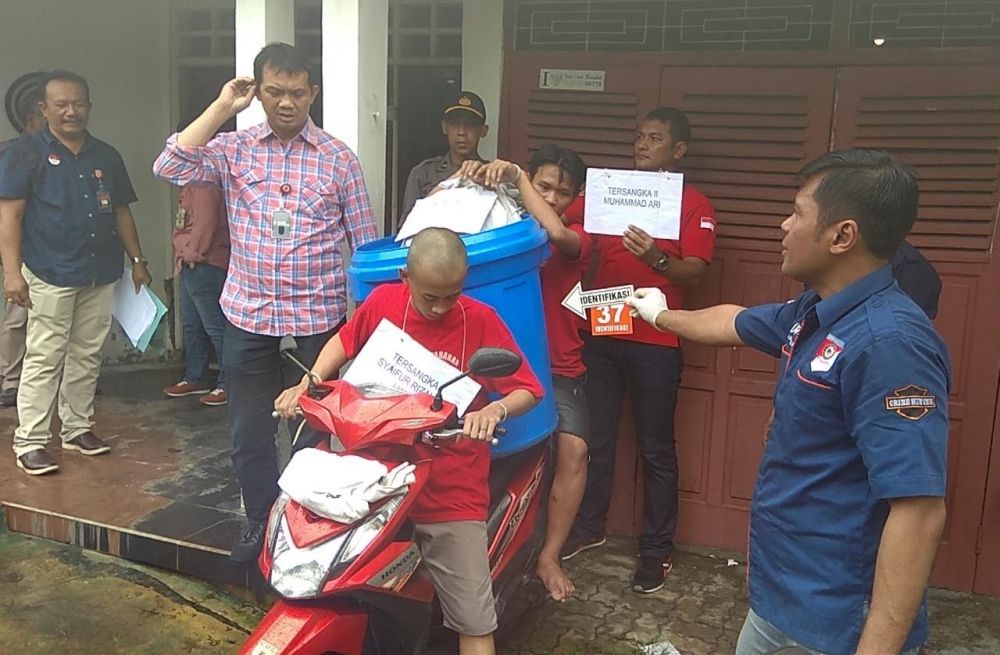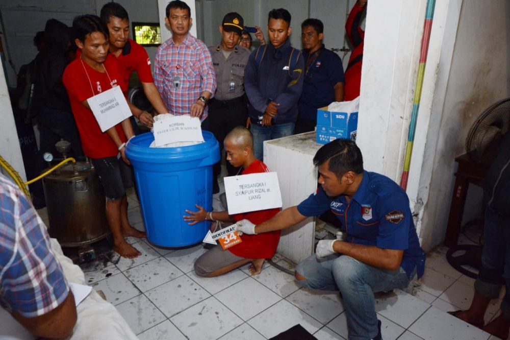 Kedua pelaku memasukkan korban ke dalam tong plastik