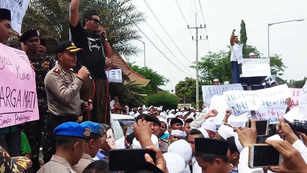Dengan mengenakan sarung, ribuan santri tersebut menggelar aksi di depan kantor DPRD Kabupaten Probolinggo jalan Panglima Sudirman.