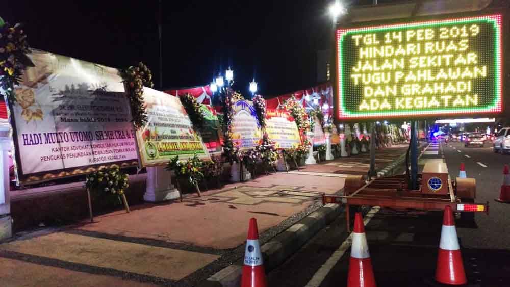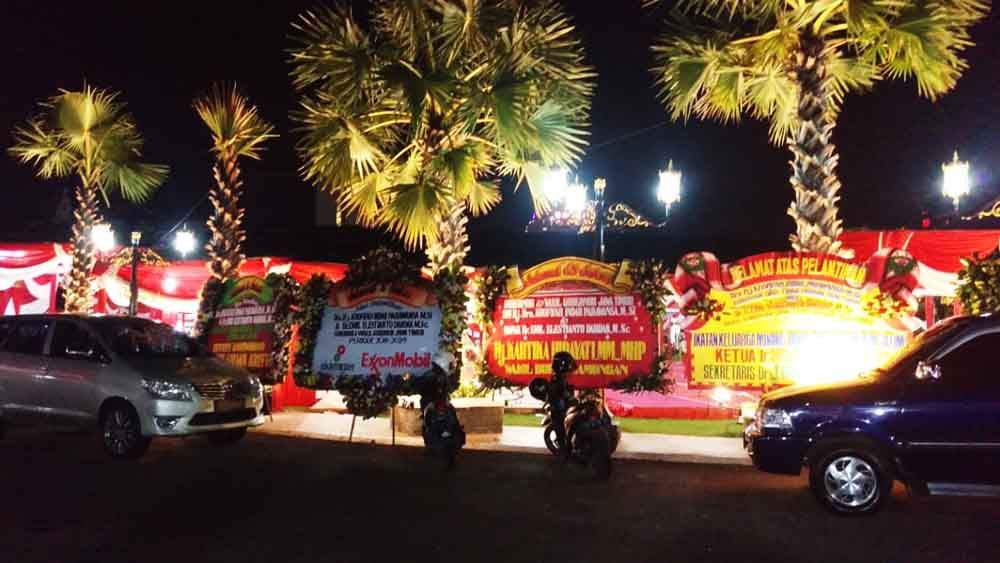 Pantauan jatimnow.com, hingga pukul 23.30 Wib, ratusan karangan bunga memadati halaman serta sepanjang jalan Gedung Grahadi.