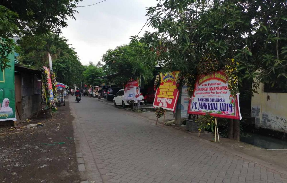 Berdasarkan keterangan warga setempat, karangan bunga ucapan selamat itu datang sejak hari Rabu (12/2/2019) kemarin. Karangan bunga terus berdatangan secara terus menerus.