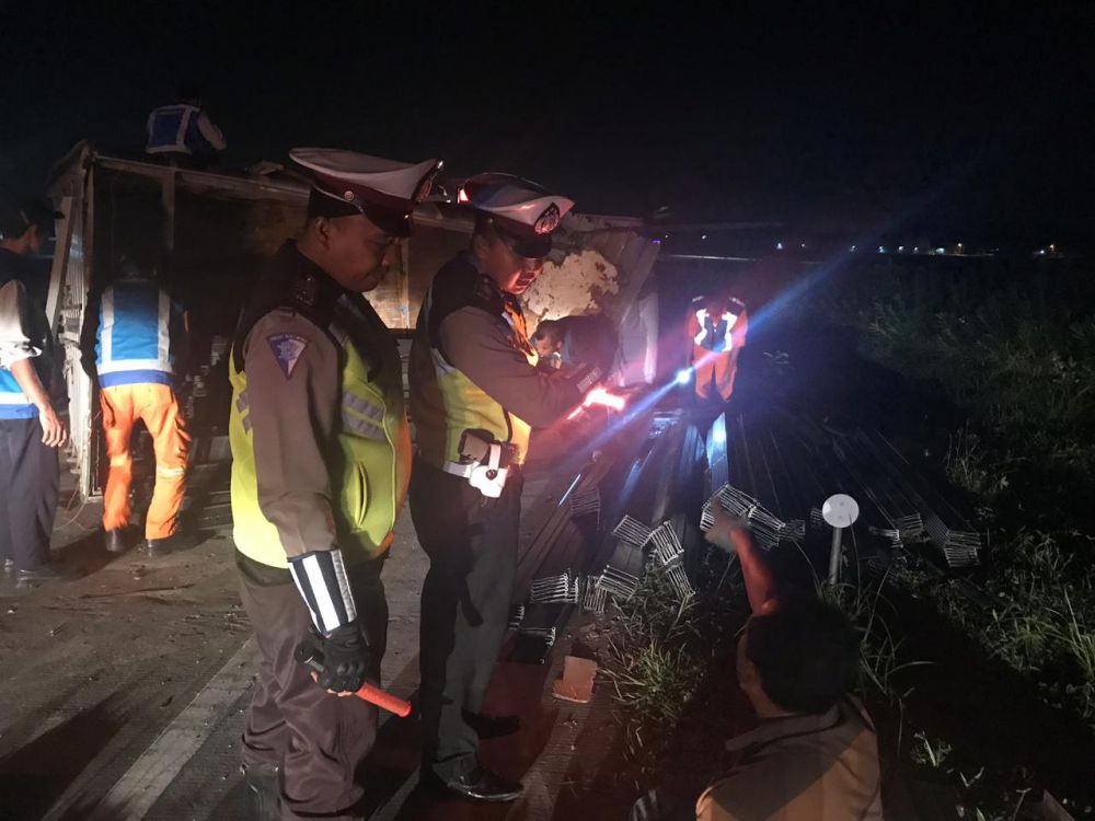 "Truk tergelincir di lajur kanan tol kemudian terguling," terang Alumnus AKPOL tahun 1999 ini.