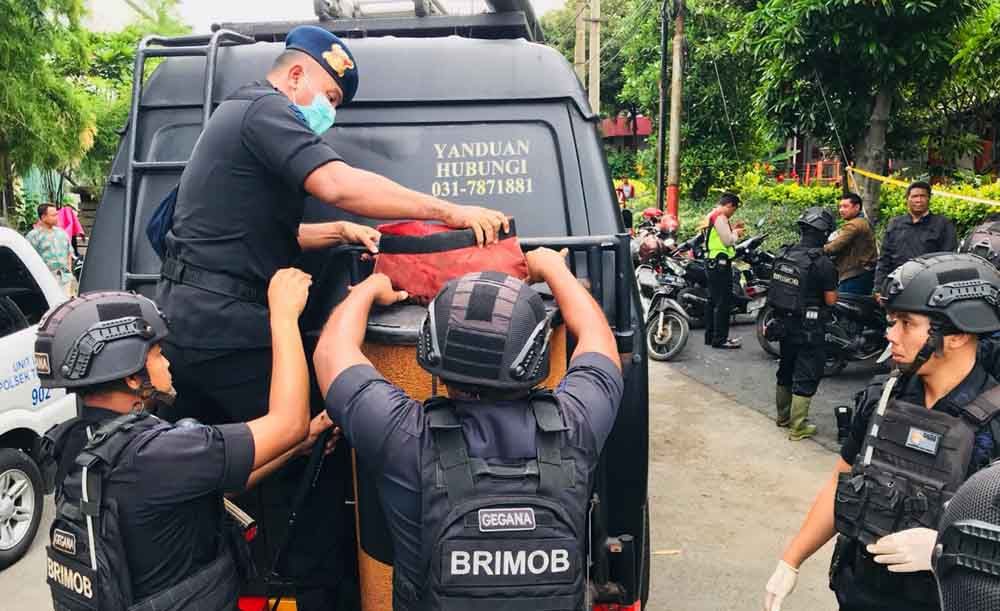 Granat tersebut dievakuasi dan diamankan di mobil penjinak bom (Jibom) milik Gegana Polda Jatim.