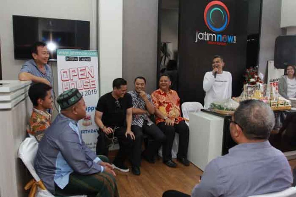 Sambutan Pimpinan Redaksi jatimnow.com Budi Sugiharto dalam ulang tahun pertama media online yang berada di Jalan Jimerto 17 A Surabaya