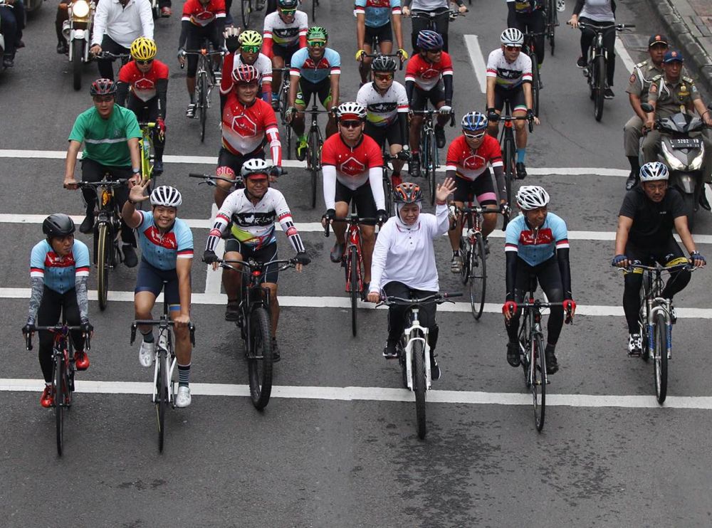 Gubernur perempuan pertama di Jatim itu berharap saat sampai di garis finish di Istana Negara, para pesepeda nantinya akan diterima langsung oleh Presiden Jokowi.