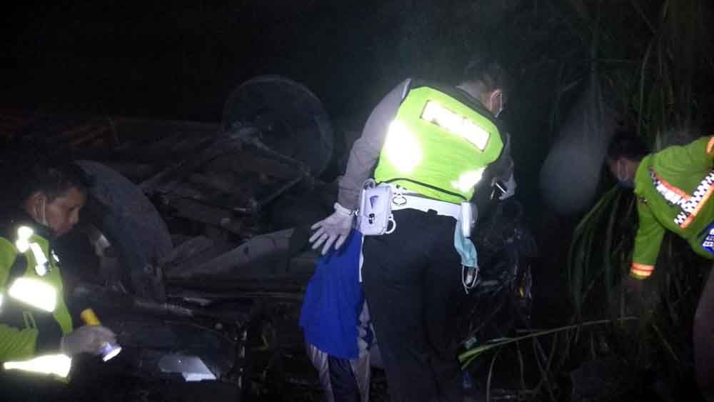 "Betul ada kecelakaan tunggal. Korbannya dua orang meninggal dunia. Masih belum teridentifikasi alamatnya," kata Kanit Laka Sat Lantas Polres Ngawi, Iptu Cipto Utoyo.