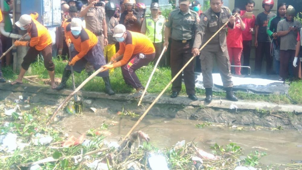 "Kami petugas dari Satpol PP melaporkan polisi yang saat itu kebetulan ada di kantor kecamatan. Tak lama kemudian petugas dari Polsek Gedangan dan Polresta Sidoarjo datang ke lokasi mayat itu," ujarnya.