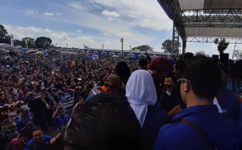 jatimnow.com - Kampanye Akbar Partai NasDem di Stadion Yosonegoro, Magetan, Minggu (7/4/2019), berlangsung semarak. Ketua Umum (Ketum) Partai NasDem Surya Paloh yang hadir dalam kampanye itu mengajak ribuan kader dan simpatisan partainya untuk memilih Calon Presiden (Capres)-Calon Wakil Presiden (Cawapres) Joko Widodo (Jokowi)-KH Ma'ruf Amin.