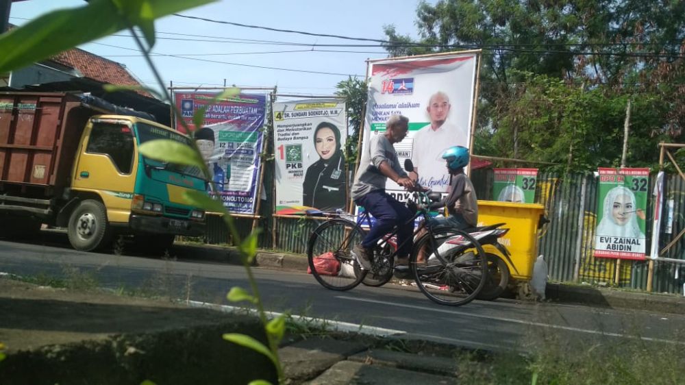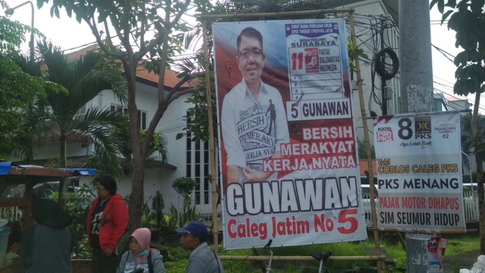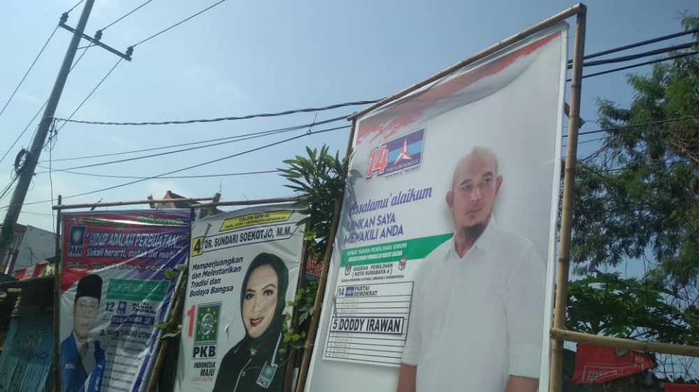 jatimnow.com - Tiga hari sebelum pemcoblosan 17 April, seharusnya sudah bersih baliho atau banner calon legislatif (caleg) hingga calon DPD, Minggu (14/4/2019). Ingat tiga hari ini masa tenang!