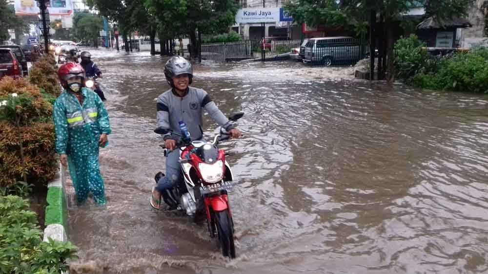 "Di depan RS UB ketinggiannya sampai menutupi sepeda motor makanya tidak ada yang berani lewat sana. Arusnya juga deras," kata Ahmad Ariansyah, seorang mahasiswa Universitas Brawijaya.