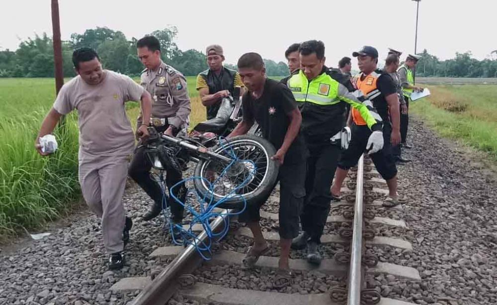 Kecelakaan terjadi di perlintasan KA tanpa palang pintu di Dusun Lugjag, Desa Pengatigan, Kecamatan Rogojampi, Banyuwangi. Korban yang menaiki motor GL Max P 4590 ZS terlempar sejauh 20 meter ke arah persawahan.