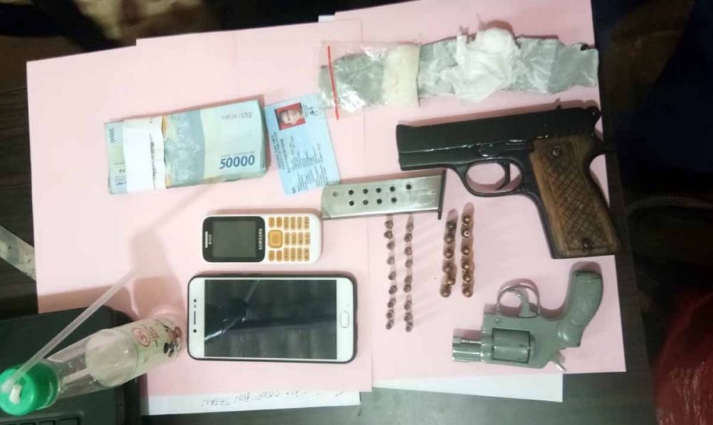 "Kami juga menyita dua pucuk senjata api jenis FN dan Revolver serta 30 butir peluru," kata Dirresnarkoba Polda Jatim, Kombes Pol Sentosa Ginting Manik, Selasa (30/4/2019).