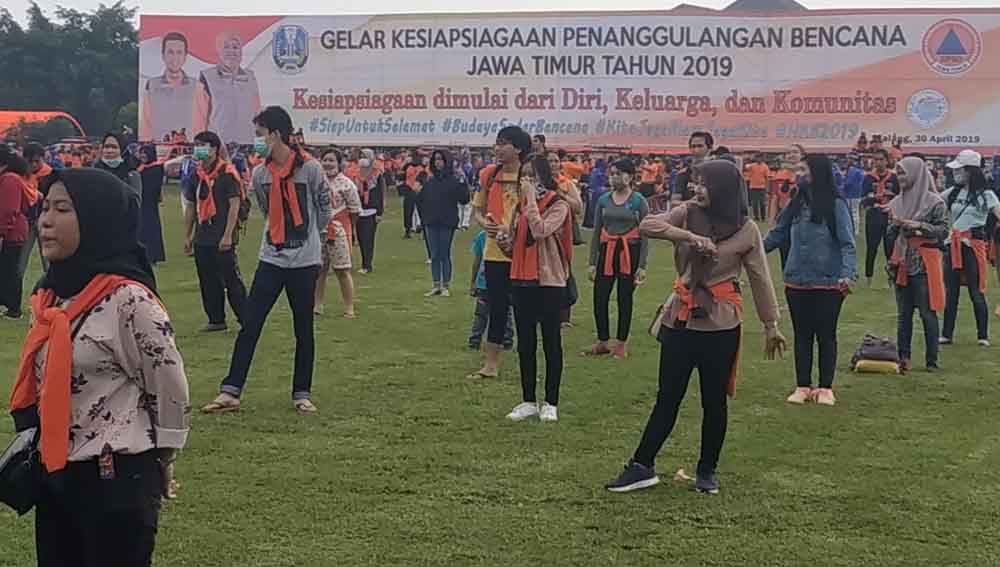 Simulasi digelar dalam Hari Kesiapsiagaan Bencana Provinsi Jawa Timur, melibatkan berbagai elemen. Terdiri dari kaum disabilitas, perempuan lansia, dan kaum berkebutuhan khusus untuk menghadapi bencana dan proses evakuasi.