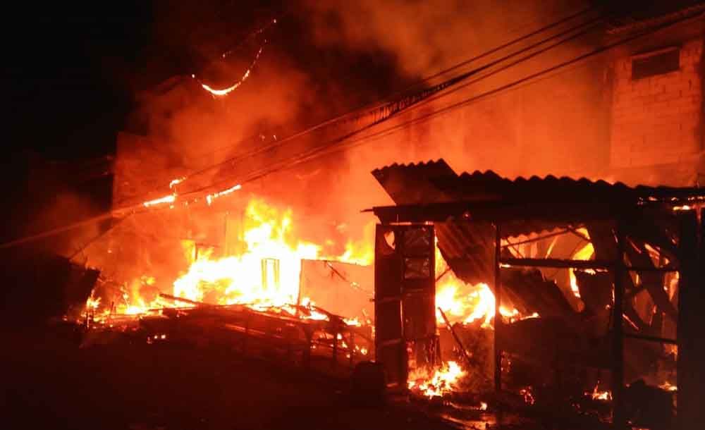 jatimnow.com - Sebuah bangunan non permanen yang dibagi menjadi 3 usaha di Jalan Tambak Wedi Baru Gang IX, Kelurahan Tambak Wedi, Kecamatan Kenjeran, Surabaya terbakar, Rabu (1/5/2019) malam.
