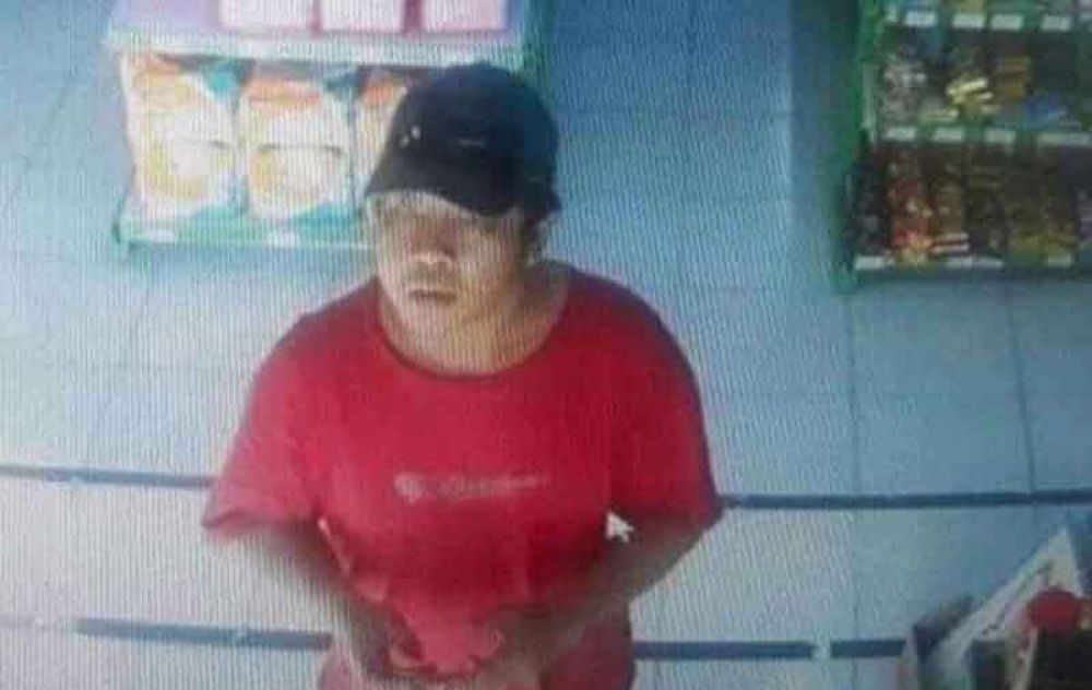Dari rekaman CCTV, ciri-ciri pelaku mengenakan kaus berwarna merah, celana pendek, memakai topi hitam dan tubuhnya agak gemuk.