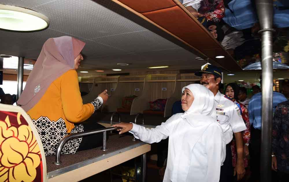 Gubernur perempuan pertama di Jatim itu mengapresiasi langkah Dinas Perhubungan (Dishub) Jatim bersama Pelindo dan instansi terkait dengan pengaturan pola penumpang yang turun dari kapal laut bisa difasilitasi ke terminal bungurasih. Juga ada yang tujuan ke terminal Nganjuk dan Madiun.