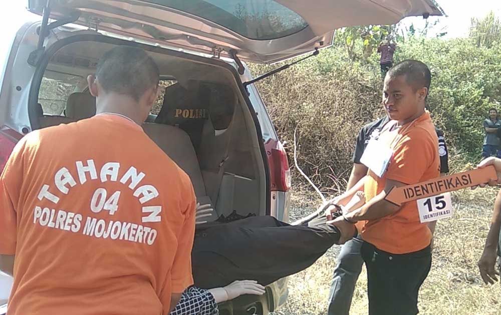 Kedua tersangka yaitu Wahyu Hermawan (25), asal Desa Entalsewu, Kecamatan Buduran, Kabupaten Sidoarjo dan Sugeng Wahyu (23) warga Desa Sugeng, Kecamatan Trawas, Kabupaten Mojokerto memperagakan sebanyak 29 adegan di 5 TKP.