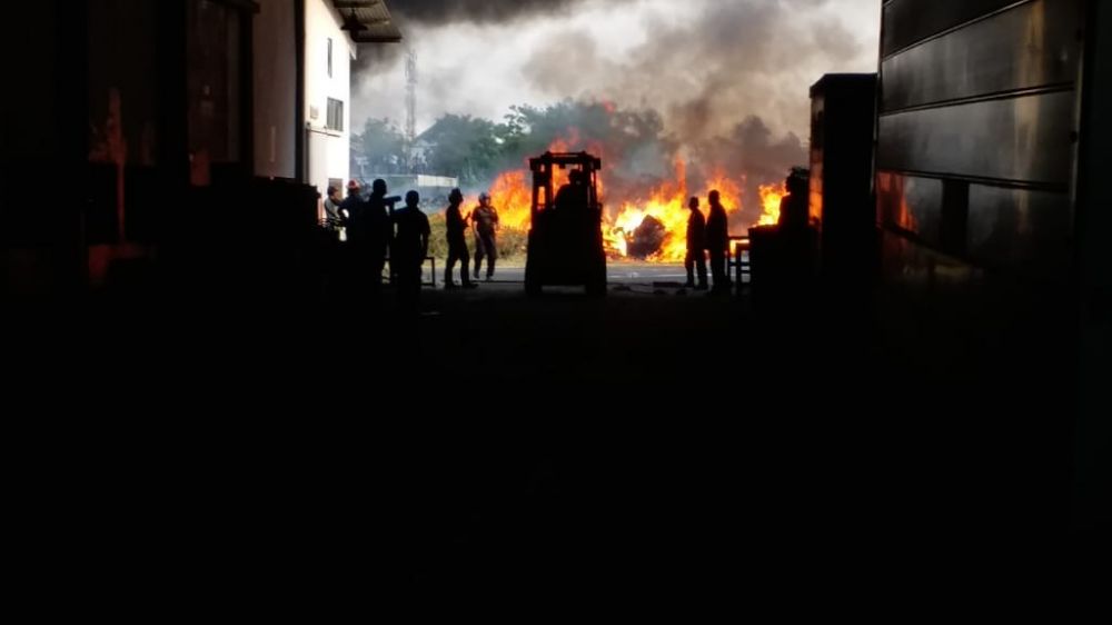 jatimnow.com - Area belakang PT Kemas Perdana Internasional Jalan Sidomulyo RT 06 RW 01, Kecamatan Buduran, Kabupaten Sidoarjo terbakar, Sabtu (7/9/2019).