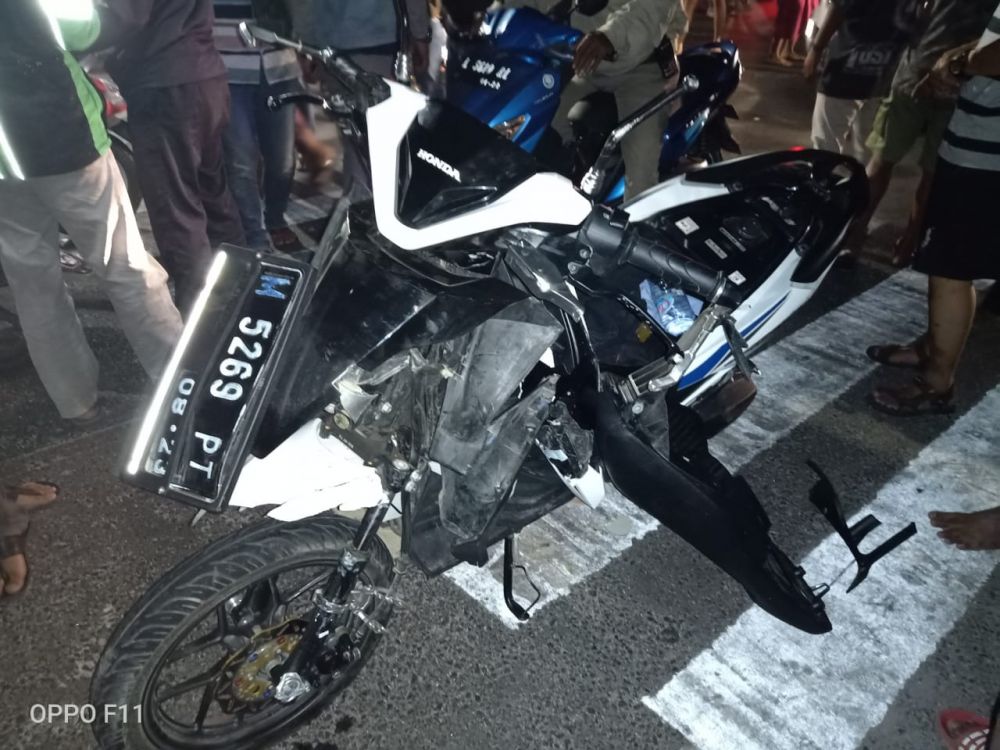 Motor yang dinaiki 3 orang itu adalah Honda Vario bernopol M 5269 PT yang dikendarai Sulaiman berboncengan dengan seorang wanita yang belum diketahui identitasnya dan Rohman (25), warga Pamekasan, Madura.