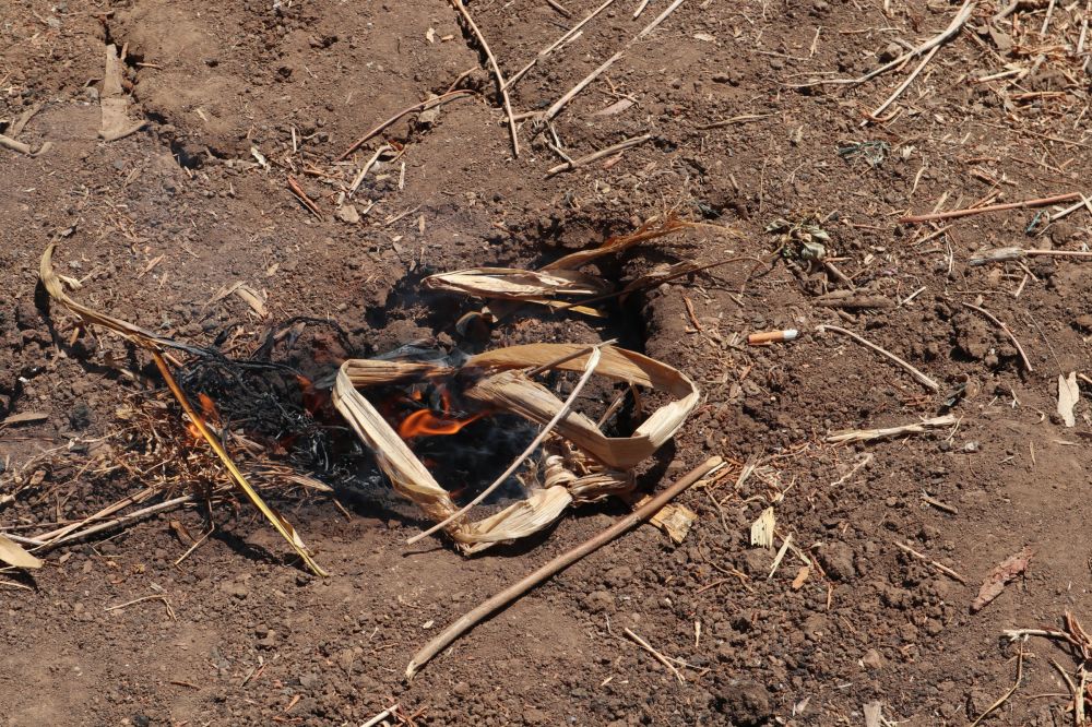 Menurutnya, warga sudah melakukan upaya pemadaman dengan melakukan penyiraman. Namun ketika satu titik padam, api muncul lagi di titik yang lain.