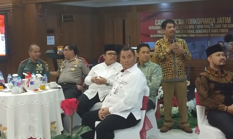 Cangkrukan Forkopimda Jatim bersama KPU, Bawaslu, Ketua DPD/DPW partai politik dan Tim Sukses Paslon Gubernur/Wakil Gubernur Jawa Timur itu untuk menciptakan situasi yang kondusif pilkada serentak 2018 dan pemilu 2019.