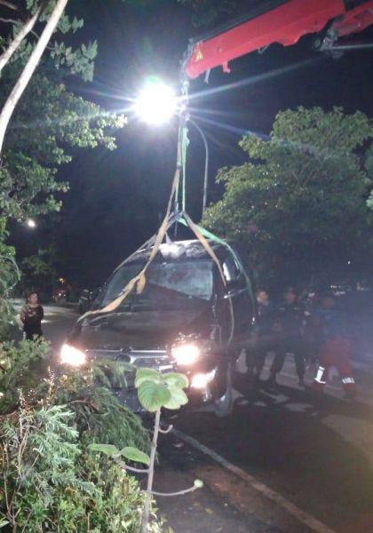 "Untuk korban nihil dan seluruh penumpang berhasil dievakuasi anggota Damkar Wiyung. Kronologi terceburnya mobil ke sungai diduga pengemudi bermaksud menginjak pedal rem, namun salah menginjak pedal gas diduga terpengaruh alkohol," ujarnya.