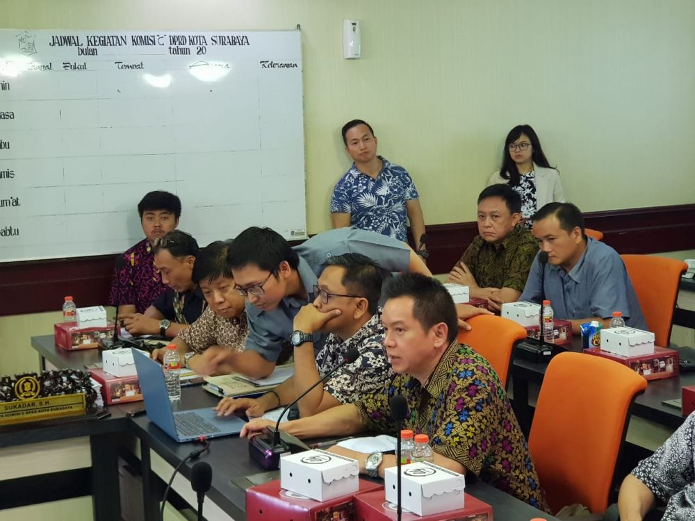 jatimnow.com - Permasalahan warga perumahan Dharmahusada Mas, Kecamatan Mulyorejo yang mengadukan permasalahan Prasarana, Sarana dan Utilitas (PSU) atau yang dikenal dengan fasum-fasos dengan Komisi C DPRD Kota Surabaya menyingkap beberapa fakta menarik.