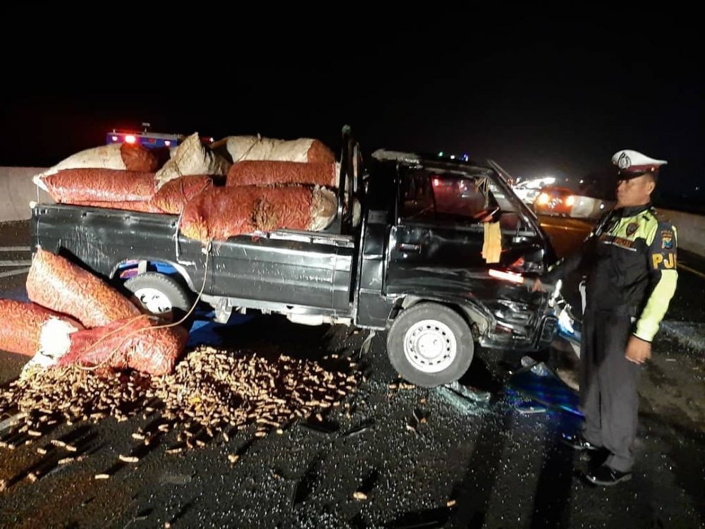 "Xenia menabrak pembatas jalan dan terguling sedangkan pengemudi pikap juga melakukan pengereman dan membanting setir ke kiri kemudian karena jarak sudah dekat maka terjadilah laka lantas," ujarnya.