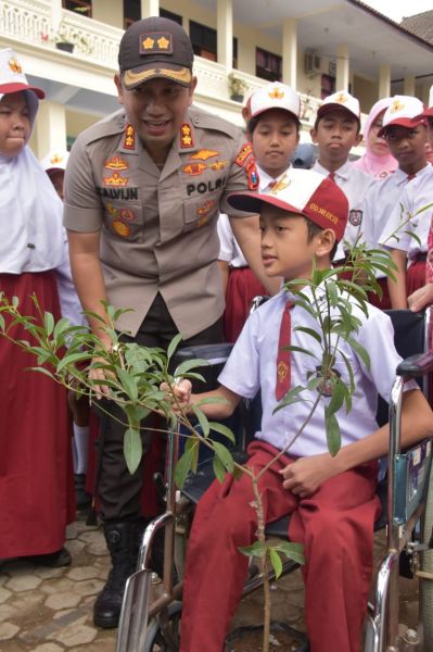 Kapolres Trenggalek, AKBP Jean Calvijn Simanjuntak mengatakan penanaman pohon serentak dilakukan seluruh Polres jajaran Polda Jatim.